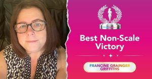 Francine said “Thank you so much for my gifts for winning the non scale victory award they are very much appreciated. It means so much to be recognised by my peers who know what it takes and what you go through to lose weight emotionally and physically. It has inspired me to keep going and get to goal. Thanks everyone for the support, encouragement and recognition.”