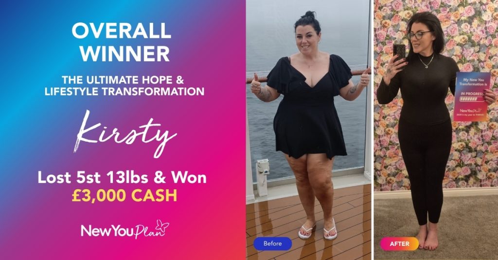 We are beyond excited to announce our November/December Overall Transformation Winner: Kirsty! After years of “losing all hope” with other plans, Kirsty found her spark with The New You Plan and has claimed a £3,000 cash prize.