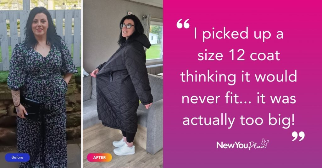Kirsty: “For a couple of years, I tried everything to lose weight and nothing worked. I was about to give up until I stumbled across The New You Plan on Google. I read the reviews and thought, ‘Do you know what? It’s worth a try. If it doesn’t work, it doesn’t work.’ I started on the 17th of March, and by the end of the first week, my tightest coat was already feeling baggy. My husband was like, ‘You’re sticking to this!’