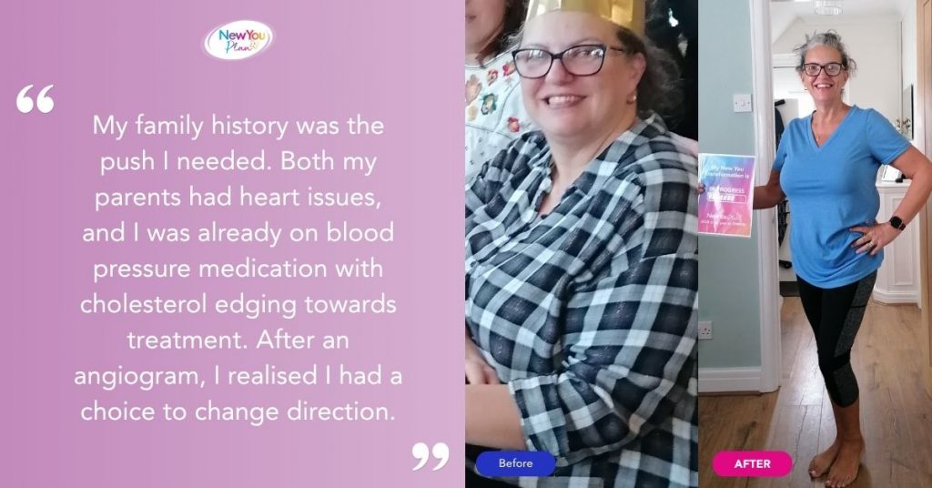 Helen: My family history was the push I needed. Both my parents had heart issues, and I was already on blood pressure medication with cholesterol edging towards treatment. After an angiogram, I realised I had a choice to change direction. Around that time, The New You Plan kept appearing on Facebook, and it felt like a sign. In December I committed properly, ordered an 8-week bundle, and started on 3rd January, determined to give myself a real chance.