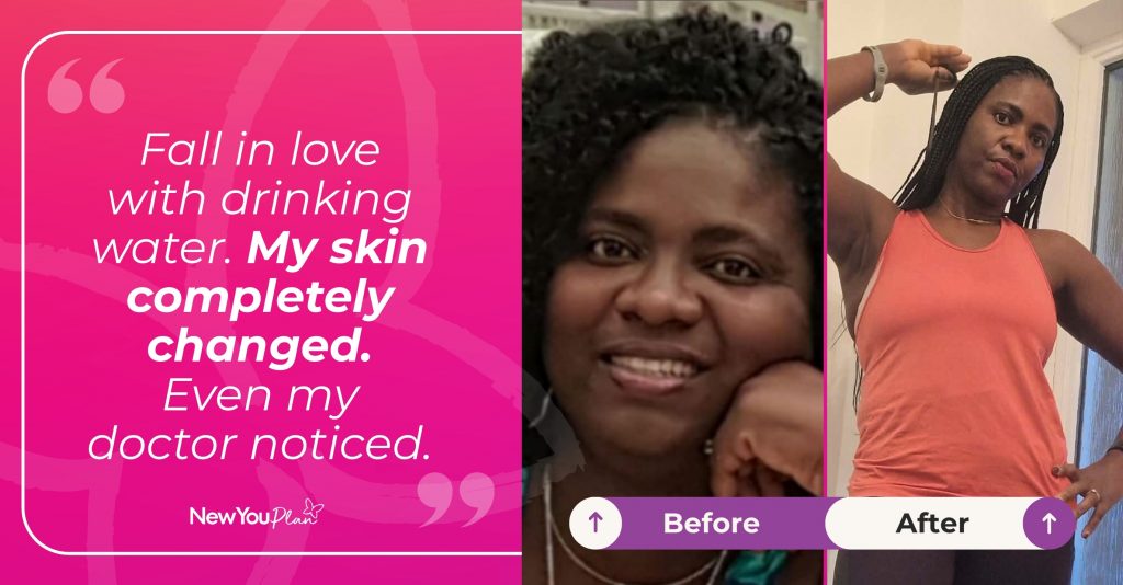 You can really see the difference, especially in my skin, not just from the water but from the New You Glow supplements as well. Somebody said to me “Your skin is completely glowing”, and I told them it was because I had been taking the supplements and drinking water. It is a mixture of all parts of the plan.