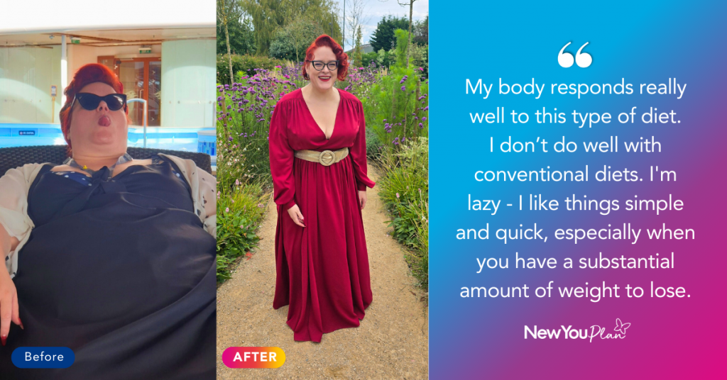 After years of hiding away at home, avoiding social situations, giving up the hobbies she loved and feeling trapped by her weight, Rachel made the decision to go “all in” with The New You Plan. In just 18 months, she’s lost almost 12st*, rediscovered her confidence, returned to her music, started travelling again and learned how to live rather than just exist.