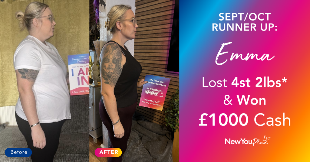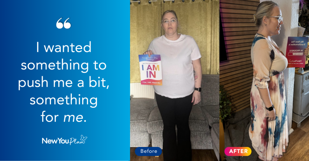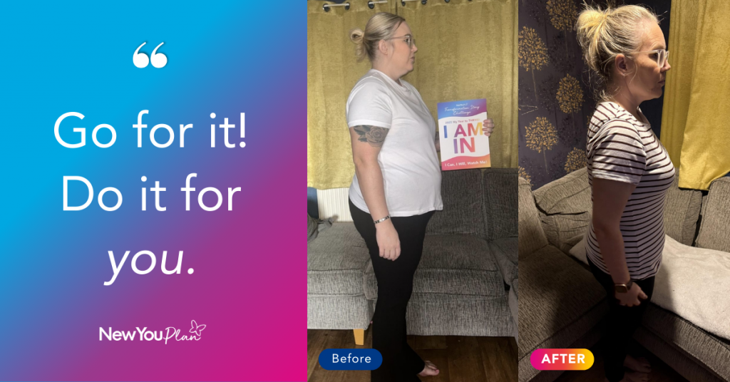 Emma: I didn’t know what I wanted to do at first, so I searched online and found New You. I read loads of reviews and thought, “Could I do this?” I decided to try. I started once before, but my grandmother was very unwell and I was her carer, so it didn’t last long. After she passed away, I gained a lot of weight. That was the moment I said, “No… I’m giving this a proper go.”